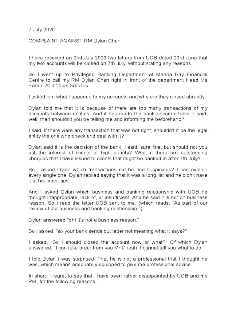 Letters To Uob Compiled Till 15th August 2020 Pdf Cheque Banks